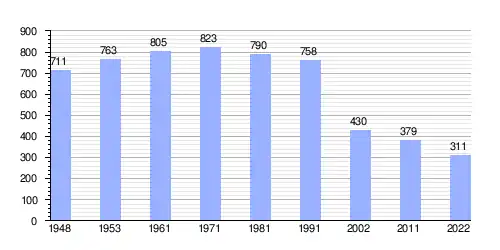 | Gráfica de evolución demográfica de Dobra Voda entre 1948 y 2022 |