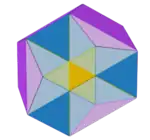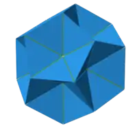 | Polígonos que forman las caras | Triángulos equiláteros // Hexágonos estrellados | |