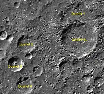 Por convención estos elementos son identificados en los mapas lunares poniendo la letra en el lado del punto medio del cráter que está más cerca de Doerfel.