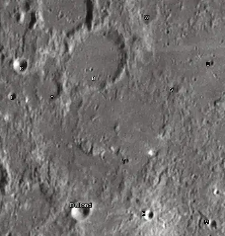 ![]() Localización de Dollond (centro-izquierda). Fotografía de la misión LRO |