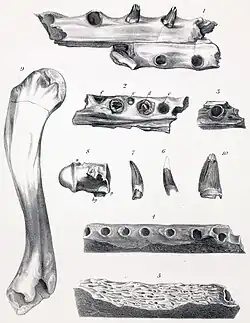 ![]() Fósiles referidos a Gavialis dixoni por Richard Owen | ||