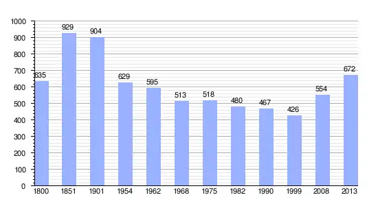 Los datos demográficos contemplados en este gráfico de la comuna de Dolo[4] se han cogido de 1800 a 1999 de la página francesa EHESS/Cassini, y los demás datos de la página del INSEE.[5]