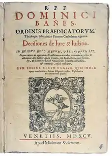 - «Dominico Bañes. Commentaria in secundam secundae angelici doctoris D. Thomae. Venetiis: apud Bernardum Iuntam; 1586.». Archivado desde el original el 6 de septiembre de 2011. Consultado el 17 de octubre de 2015.