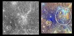 Estas diferencias de color, con en las proximidades del cráter Titian, sugieren que el material del cráter de impacto ha sido excavado desde debajo de la superficie de Mercurio, que difiere en composición de la superficie circundante.