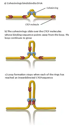 Los mecanismos subyacentes a la formación de TAD también son complejos y aún no se han aclarado por completo, aunque varios complejos de proteínas y elementos de ADN están asociados con los límites de TAD. Sin embargo, el modelo de esposas y el modelo de extrusión de bucle se describen para describir la formación de TAD con la ayuda de CTCF y proteínas de cohesina.[11] Además, se ha propuesto que la rigidez de los límites del TAD en sí misma podría causar el aislamiento del dominio y la formación del TAD.