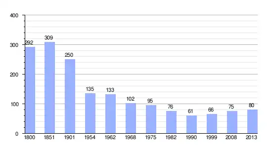 Los datos demográficos contemplados en este gráfico de la comuna de Dompierre-sur-Héry,[4] se han cogido de 1800 a 1999 de la página francesa EHESS/Cassini, y los demás datos se han cogido de la página del INSEE.[5]