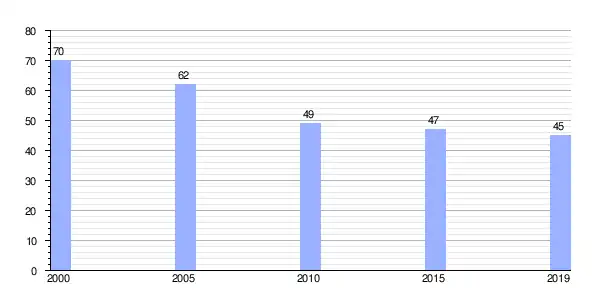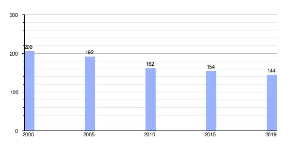 | Gráfica de evolución demográfica de Donalbai (aldea) entre 2000 y 2019 |