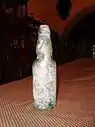 En la foto se muestra la primera botella en la que se envasaban las sodas, hecha de manera artesanal. En la parte superior tenía una canica de vidrio que servía de tapón y era subida por la fuerza del gas, con el cuello impidiendo que se fuese al fondo.