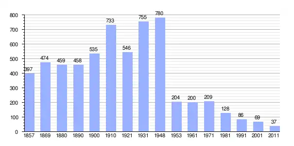 | Gráfica de población de Donje Planjane 1857-2011 |