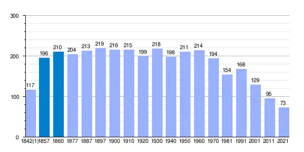 Su evolución refleja que durante las primeras décadas del siglo pasado la población estaba estabilizada en torno a los 200 habitantes, salvo en la década de 1940. En 1900 la población era de 220 personas, prácticamente la misma que en la década 50-60. A partir de esta fecha va disminuyendo, en 1991 tenía 168 habitantes, en 2001 eran 129 y en el último censo de 2010 ya solo 103.
