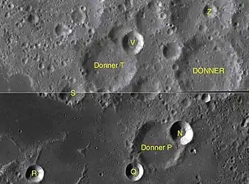 Por convención estos elementos son identificados en los mapas lunares poniendo la letra en el lado del punto medio del cráter que está más cerca de Donner.