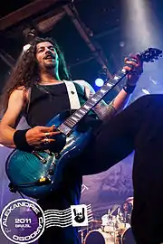 Bas Maas tocando con Doro en Brasil, 2011; fue uno de los guitarristas de la banda After Forever, antes de unirse a Doro en 2008.
