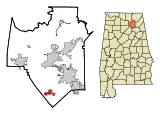 Ubicación en el condado de Marshall y en el estado de Alabama