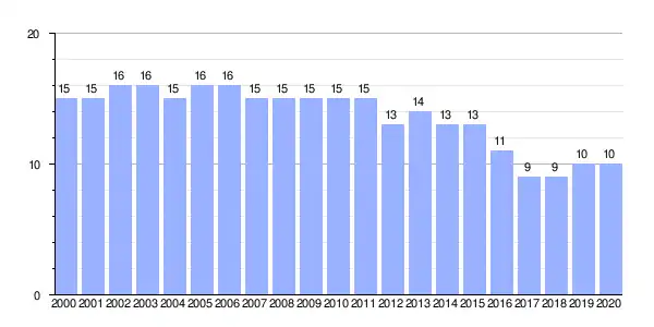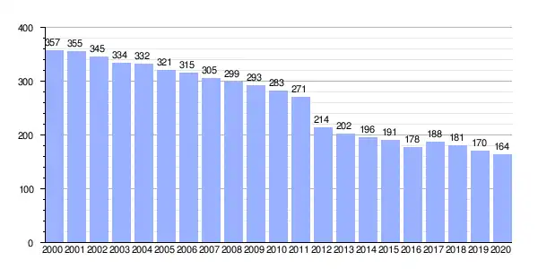 Gráfica de evolución demográfica de Dozón (lugar) entre 2000 y 2020