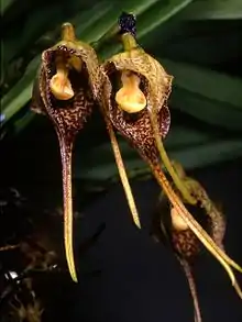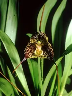 Dracula: nombre genérico que deriva del latín y significa: "pequeño dragón", haciendo referencia al extraño aspecto que presenta con dos largas espuelas que salen de los sépalos.