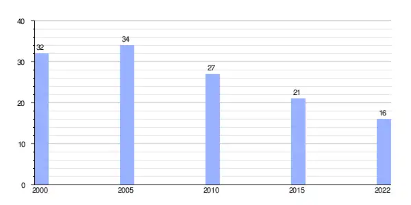 | Gráfica de evolución demográfica de Drados entre 2000 y 2022 |