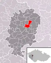 Se encuentra ubicada al noreste de la región, en la cuenca hidrográfica del río Berounka —un afluente izquierdo del río Moldava que, a su vez, lo es del Elba—, y cerca de la frontera con la región de Bohemia Central.[1]