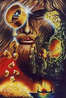 Un día Loki cortó con malicia las cabelleras de Sif, la esposa de Thor. Pero cuando este último lo descubrió, cogió a Loki y le habría triturado todos los huesos si no hubiera jurado mandar a hacer a los hijos de Ivaldi una cabellera de oro para Sif, que crecería como los otros cabellos. Loki fue, pues a la morada de los enanos y ellos hicieron los cabellos, Skidblandner, el barco de Freyr y Gungnir, la lanza de Odín. Entonces Loki apostó sobre su cabeza con el enano, cuyo nombre era Brok, que su hermano Sindre no sería capaz de hacer otros tres tesoros tan buenos como los que acaban de ser nombrados.