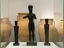 Coldstream, John Nicolas (1977): Geometric Greece – Methuen, Londres, 1977, p. 405. - Boardman, John (2006): «Sources and Models» en Palagia, Olga (ed.): Greek sculpture. Function, Materials, and Techniques in the Archaic and Classical Periods. – Cambridge University Press, 2006, pp. 2-3. ISBN 0-521-77267-2