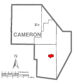 ![]() Ubicación en el condado de Cameron ![]() Ubicación del condado en Pensilvania ![]() Ubicación de Pensilvania en EE. UU. | ||
