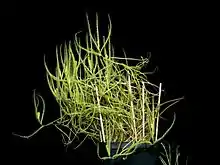 Planta herbácea anual, con un fibroso sistema radicular. Toda la planta es de color amarillo verdoso o amarronado y puede medir entre 5 a 50 cm de altura, con estrechas hojas longitudinales de más de 10 cm y pedicelos de entre 1 a 1,5 cm[2] Las plantas jóvenes son erectas, mientras que los tallos de las viejas se postran desorganizadamente, tan solo el crecimiento nuevo se mantiene erecto. Las flores pueden ser blancas, rosas, naranjas o púrpuras.[2]