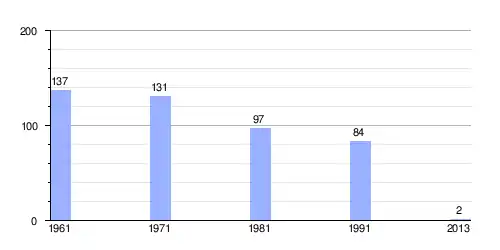 | Gráfica de evolución demográfica de Dubrave entre 1961 y 2013 |