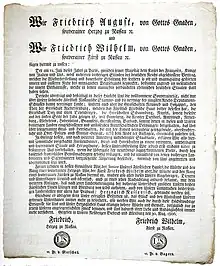 - Federico Augusto (30 de agosto de 1806 - 24 de marzo de 1816)