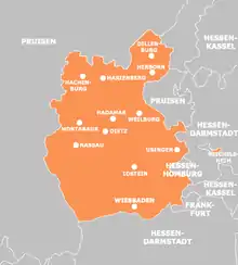 ![]() El Ducado de Nassau en 1866. | |||||||||||||||||||||||||||||||||||