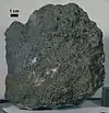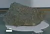 | 15476 | - | basalto | Basalto porfídico lajoso y subangular, con fenocristales de piroxeno marrón de 15 mm de largo sobre una base ligeramente ahuecada de plagioclasa, y silicatos máficos marrones y verdes |