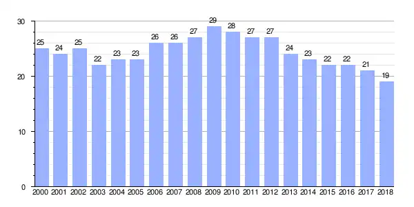 | Gráfica de evolución demográfica de Duomes de Abaixo entre 2000 y 2018 |