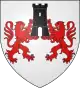 Escudo francés, consta de dos leones que representan el bien y el mal enfrentados, que apoyan sus patas delanteras levantando una torre, también posee un símbolo el cual representa la vida, el blanco representa la paz, el rojo la sangre derramada, el morado el odio y el verde la envidia
