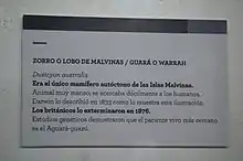El guará (Dusicyon australis), también llamado zorro-lobo de las Malvinas, zorro o lobo malvinense, lobo austral o zorro antártico, es una especie extinta de mamífero carnívoro de la familia Canidae[2] endémico de las islas Malvinas,[3] de dimensiones intermedias entre las del lobo y las de un zorro grande. Era uno de los dos únicos mamíferos terrestres nativos de las Malvinas.[4]