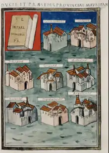 ![]() Ilustración en un manuscrito de la Notitia dignitatum del cargo dux limitis Mauretaniae Caesariensis | ||