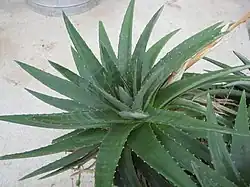 Forma rosetas abiertas rígidas de hojas triangulares estrechas de hasta 20 cm de largo. En primavera muestra espigas de flores amarillo vivo en tallos de hasta 45 cm de alto.