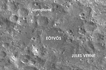 ![]() Cráter Eötvös. Detalle del plano lunar de la NASA[1] |