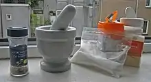 El ácido cítrico se puede usar como amortiguador para aumentar la solubilidad de la heroína marrón (brown).[29]