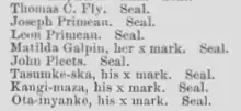 Firmó el tratado de 1882 que cedía ciertos terrenos para escuelas, modificaba los límites de la reserva y cambiaba a los funcionarios del gobierno y las raciones que percibían.[22] Su consentimiento quedó registrado en la agencia de Standing Rock el 30 de noviembre de 1882 como "Matilda Galpin, her x mark. Seal", siendo la única mujer entre los líderes síux, y convirtiéndola en la primera mujer en firmar un tratado con los Estados Unidos de América.[4][13]
