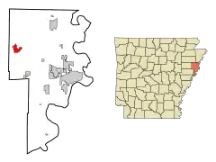 ![]() Localización en el condado de Crittenden y en el estado de Arkansas | ||