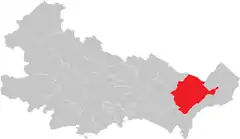 Se encuentra ubicada al este del estado, a poca distancia al sur de Viena y al oeste de la frontera con el estado de Burgenland.[2]