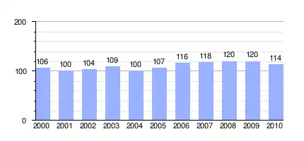 | Gráfica de evolución demográfica de Echalecu entre 2000 y 2010 |