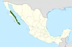 Endémica del estado de Baja California Sur en México. Habita en zonas muy secas, matorrales xerófilos, zonas pedregosas e incluso suelos arenosos cercanos a la playa. En elevaciones de 0 a 300 m s. n. m.[3][1]