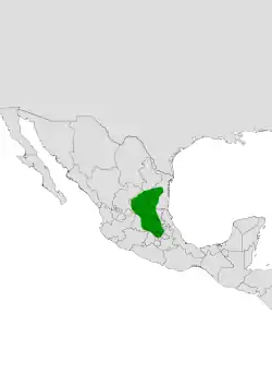 Se distribuye en Guanajuato, Hidalgo, Ciudad de México, Estado de México, Querétaro, San Luis Potosí, Tamaulipas y Zacatecas en México. Habita en matorrales de mezquite (Prosopis) y en matorrales xerófilos en elevaciones cercanas a 1600 m s. n. m.[1]