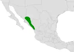 Se distribuye en Chihuahua, Sinaloa y Sonora en México, cerca del río Mayo y a lo largo de la Sierra Madre Occidental. Crece bajo la sombra de las rocas en selvas bajas caducifolias y en bosques de encino (Quercus) en elevaciones de 50 a 1200 m s. n. m.[1]