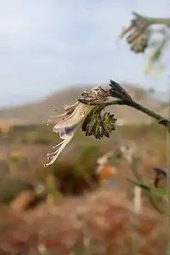 Pertenece al grupo de especies herbáceas de carácter anual o perenne, diferenciándose por sus hojas lineares e híspidas y por las flores, que poseen una corola de color blanco o rosado pálido, con tubo estrecho.[4][5]