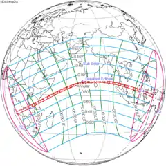 Fue visible en la mayor parte del Norte y Sur de América, se levantó sobre el noroeste de América del Norte, y el océano Pacífico, llegando a ser visible en África y Europa.[1][7][8]