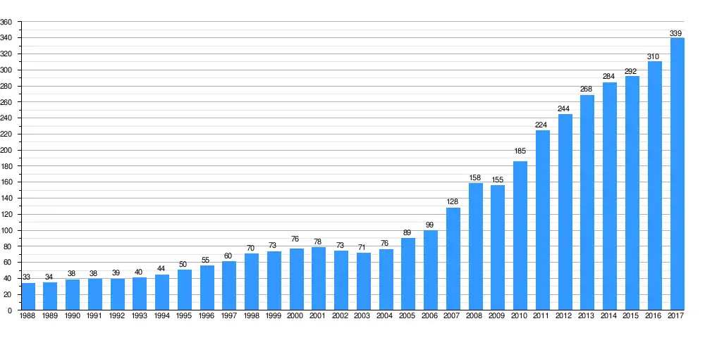 | 1988 | 1.º | US$ 1 867 millones | ||