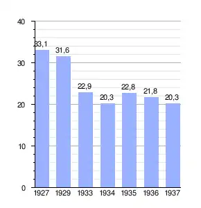 A la vez, el comercio con Alemania, muy relevante, se redujo también extraordinariamente, cayendo las exportaciones en un 82,1 % en 1933 frente a las de 1929.[5]