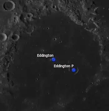 ![]() Localización de Eddington. Fotografía de la misión Lunar Reconnaissance Orbiter |