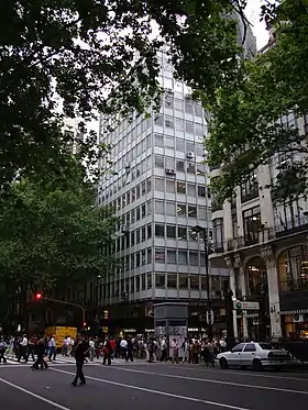 Fue diseñado por el arquitecto Carlos Corona y construido por la empresa de Eugenio Grasetto en el año 1971. Es uno de los pocos edificios de estilo moderno que se han permitido construir en la Avenida de Mayo, que se caracteriza por sus construcciones de estilo europeo de fines del siglo XIX y comienzos del XX.
