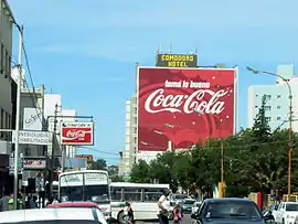 En su lado oeste, en su medianera, refleja una publicidad de Coca-Cola. La misma es muy característica en la ciudad donde se la puede divisar desde varios punto de la ciudad y alrededores.